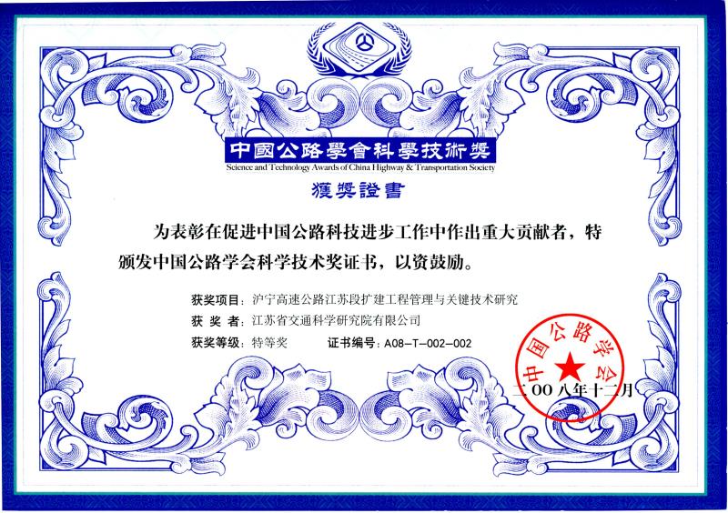 滬寧高速公路江蘇段擴建工程管理與關(guān)鍵技術(shù)研究特等獎